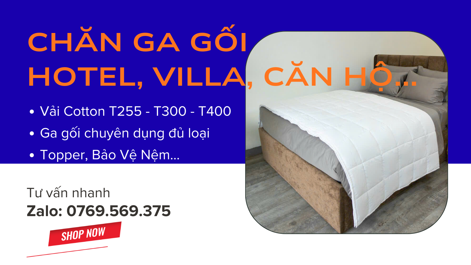 ” Được bạn bè giới thiệu, tôi đặt chăn ga nệm cho khách sạn nhỏ tại Đà Nẵng, thực sự rất hài lòng. Sản phẩm chất lượng, mẫu mã đẹp, giá cả hợp lý. Dịch vụ chu đáo, giao hàng nhanh chóng! ”
